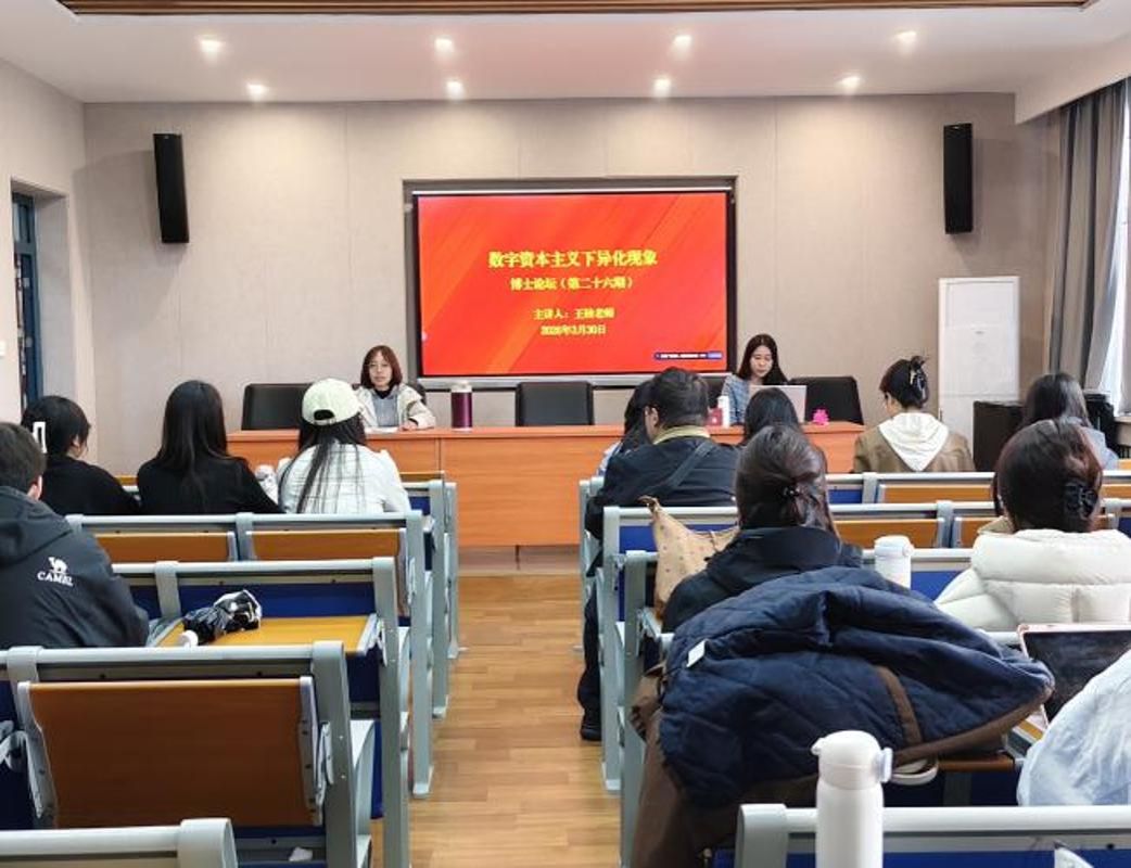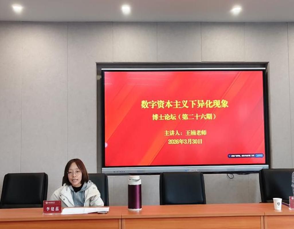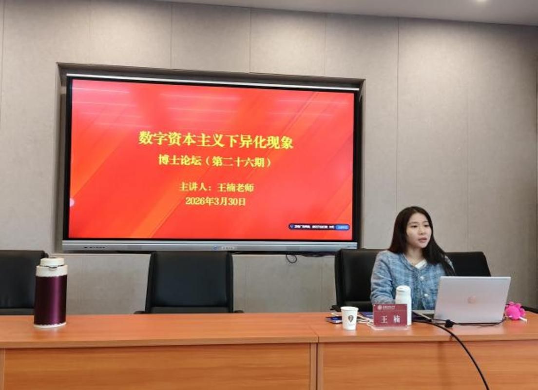 2026年3月30日下午1点, 成人论坛 在1505报告室举行博士论坛,本次论坛由 成人论坛 王楠老师主讲,李建蕊老师点评, 成人论坛 2025级研究生参加了本次论坛。
