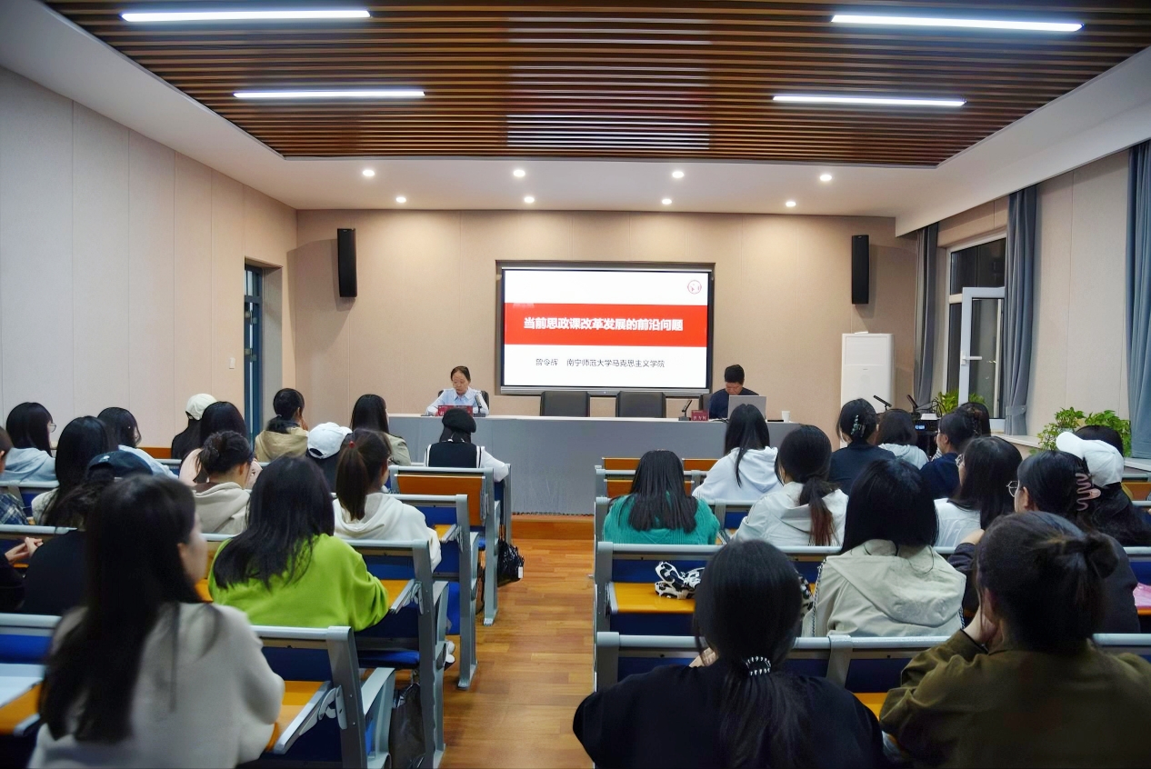 学生作关于“当前思政课改革的前沿问题”的专题报告。本次报告在南区1号教学楼505会议室举行,由副院长赵改萍(主持行政工作)主持,2023级马克思主义理论专业硕士研究生参加此次报告会。
